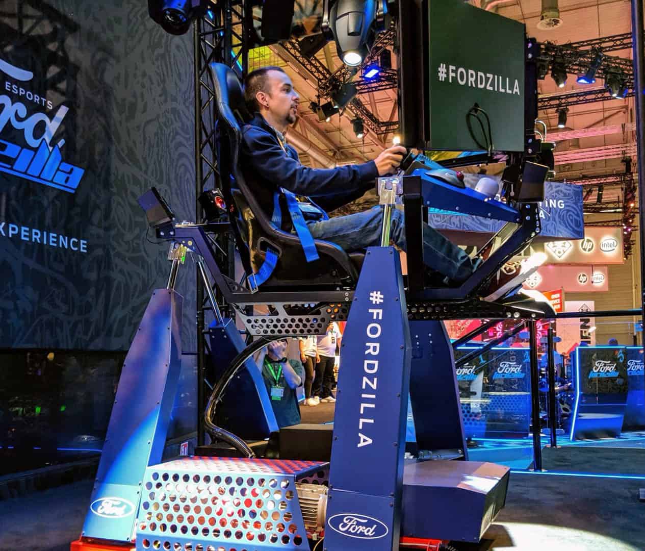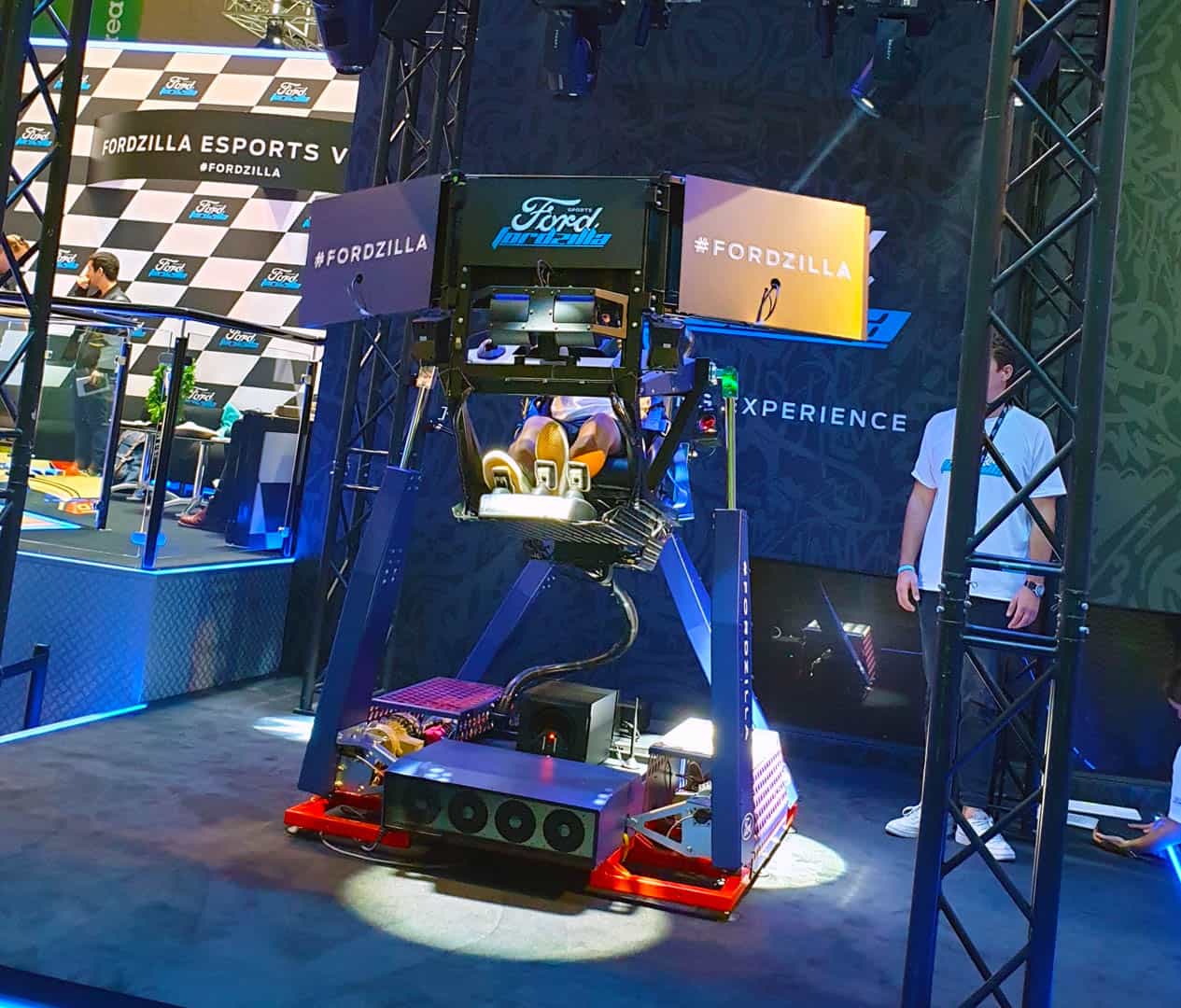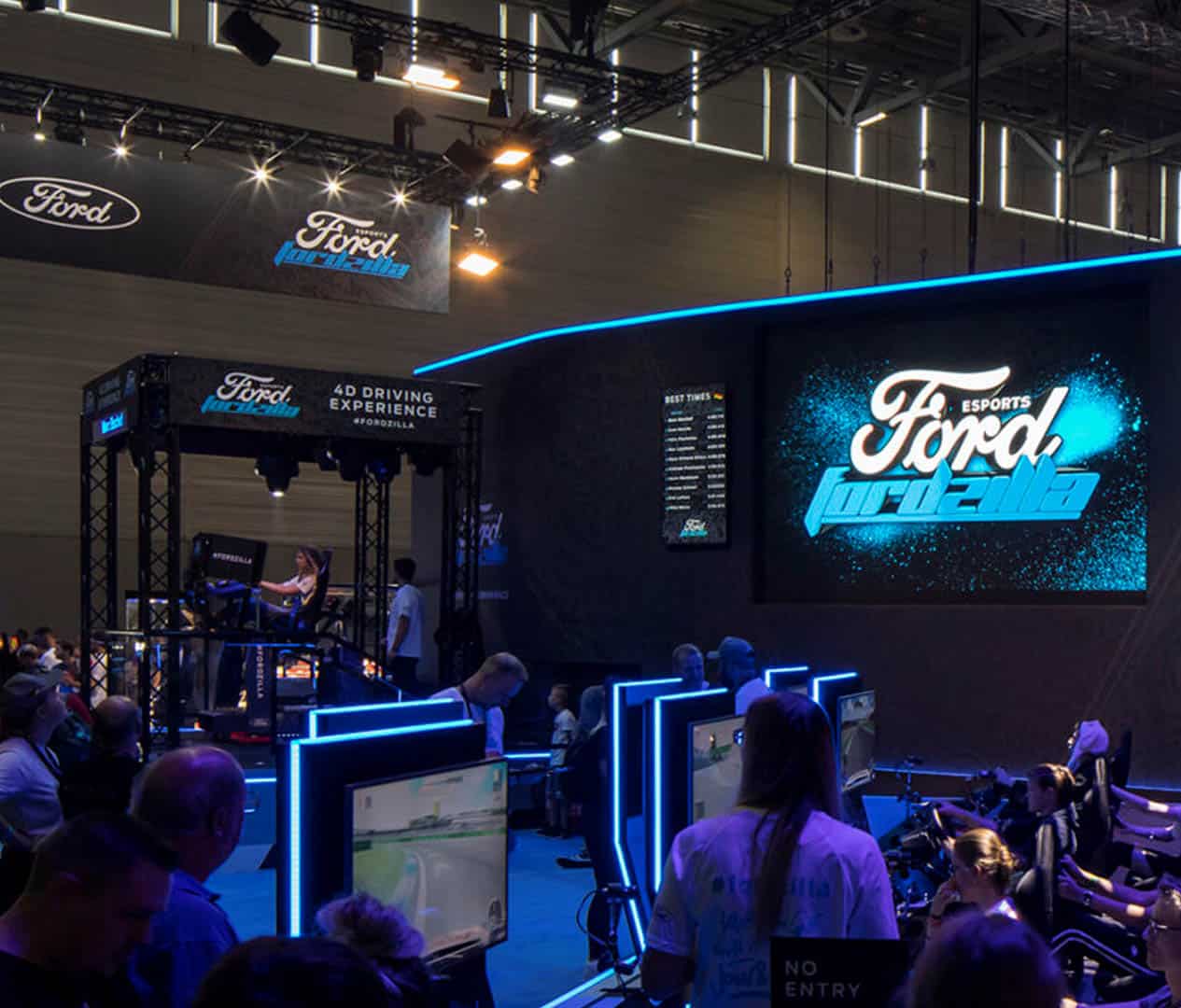 WOW, Just WOW! Envy Create commissioned us to provide this system for Ford at Gamescom. As part of the drive to recruit for their eSports racing team; participants who posted the fastest lap times when qualifying were given the chance to experience the 4D simulator. This consisted of extreme movement, the scent of burning rubber, smoke, wind and lighting effects.