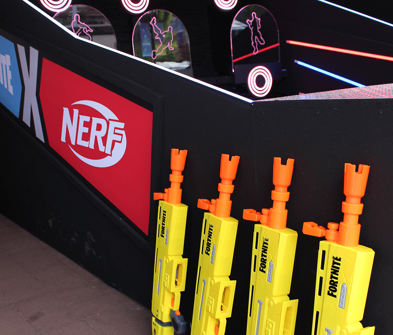 Proud to have teamed up with those amazing bods at Envy Create again to deliver interactive experiences for the Fortnite world cup! The showstopper was the Nerf shooting range – A traditional arcade experience with a modern twist! Pick up your foam-based weaponry and begin shooting at the lit targets. The more targets you hit in the time limit, the higher the score! All experiential technology designed and built especially for the event.