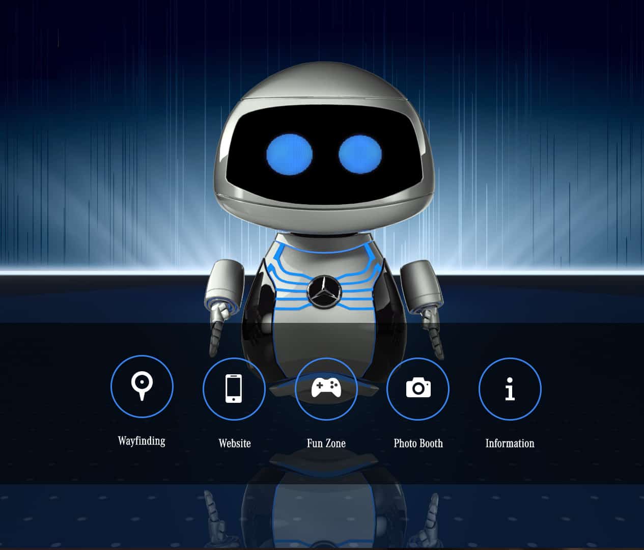 QE is a friendly character that guides you through your instore experience. QE will meet and greet you, play games with you, take and share pictures, help with wayfinding, help you check in and give special offers.