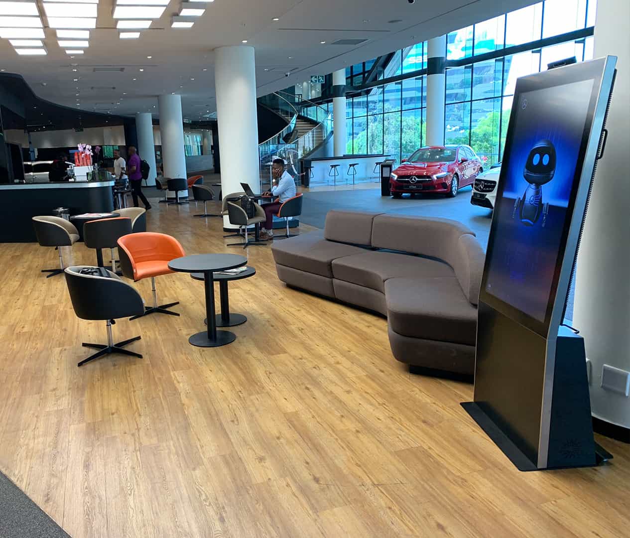 The virtual retail assistant uses advanced machine vision to recognise customers and react appropriately. Behind the scenes is a content management system that allows customisation, reporting and updates.